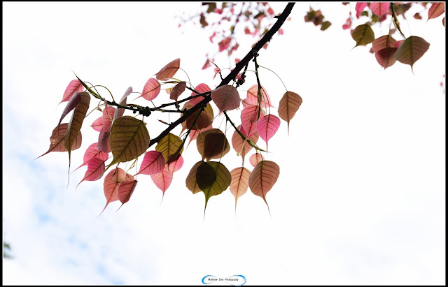 但旁邊也有全株綠葉的菩提樹,紅紅綠綠,就是好看。